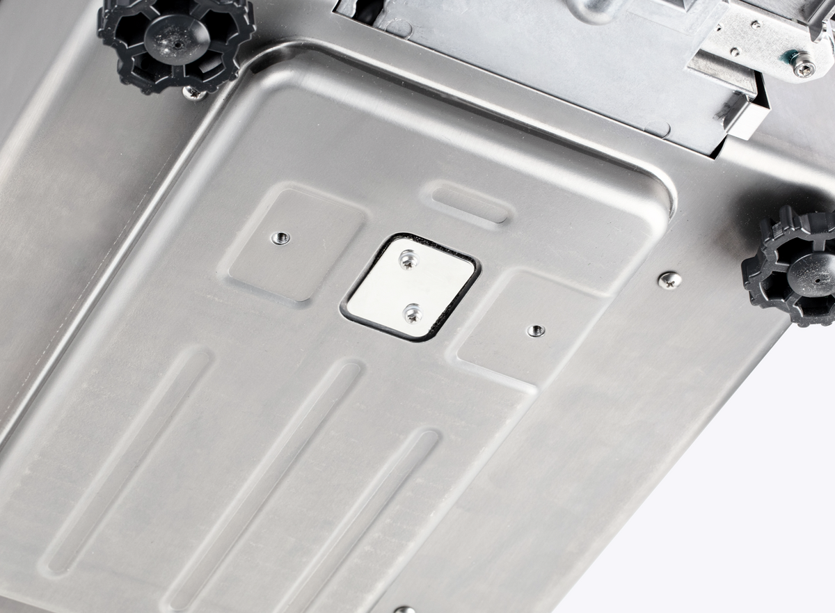 - Plataforma amplia de 350×400 mm en acero inoxidable.
